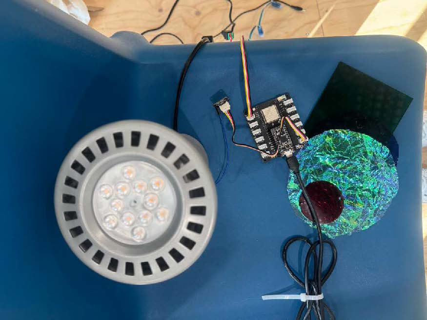 We added buttons and a distance sensor to the drops, allowing them to change the projection’s mode and color.