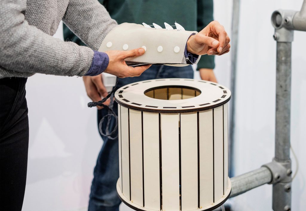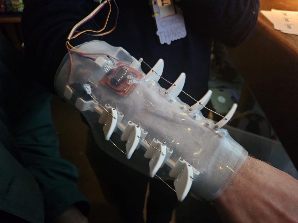 Lastly, to make the sleeve more aesthetically pleasing, we changed the wiring and 3D printed a more sturdy box, for the Itsy-bitsy, so you could attach it to a pocket of your pants instead of it being attached to your upper arm.