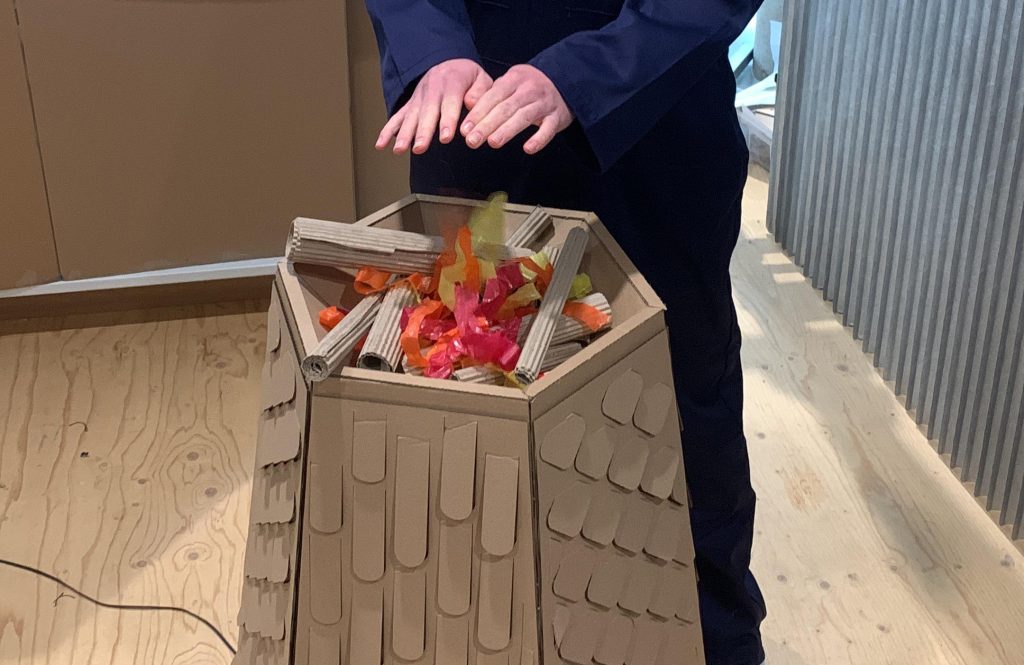 First we made a firepit for this, showing the customer that they can put their hand and arm through fire. However, the heat of the firepit didn’t really come through, so we decided to make a new thing, and also installing it with scaffolding on the application device.