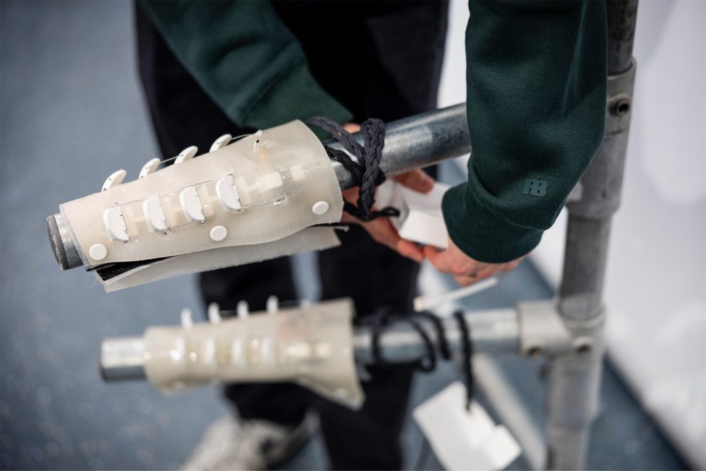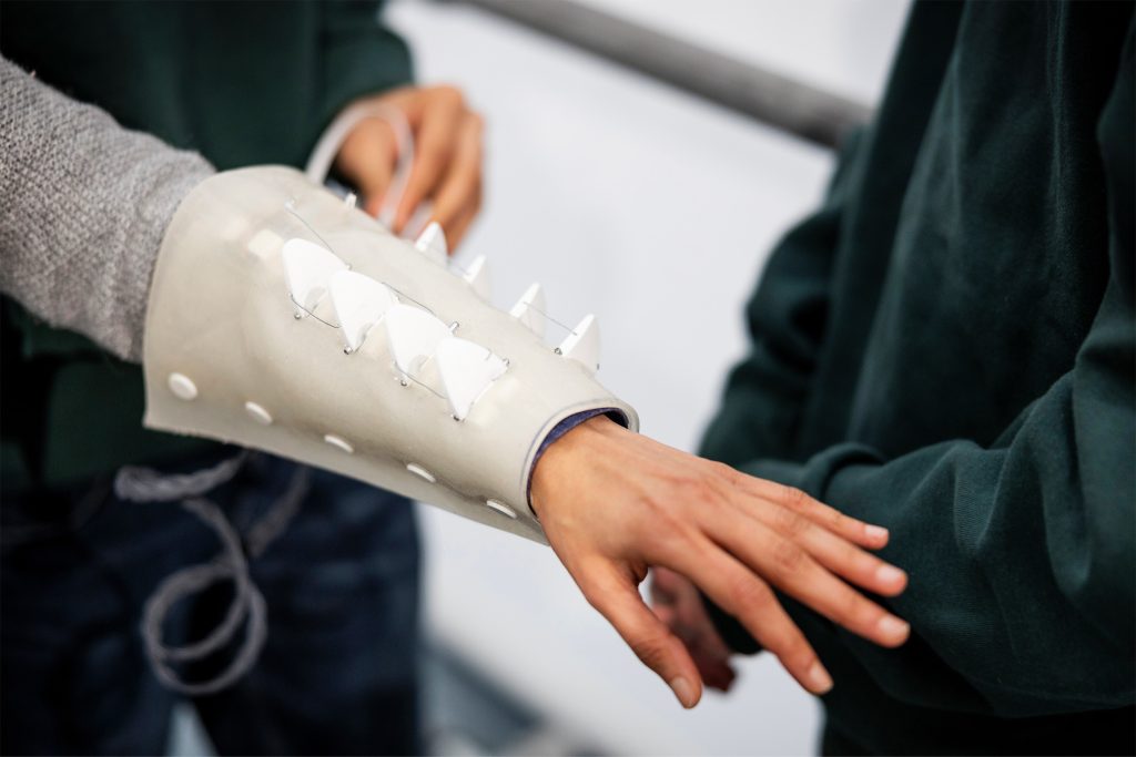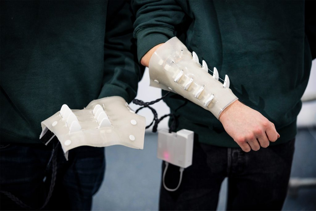 The design covers the body with a lightweight and flexible structure, ensuring full functionality without compromising mobility or comfort. Creating a seamless integration into the user’s daily life.